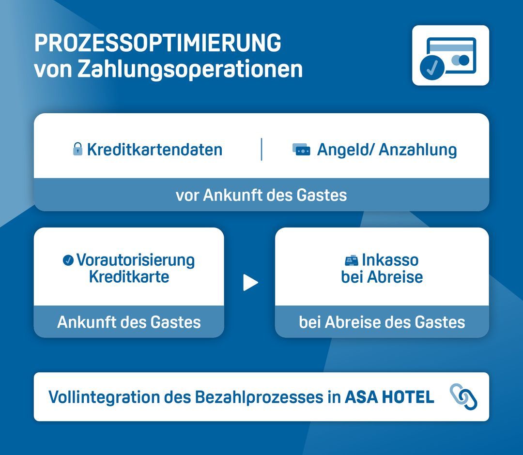 Wartezeiten werden eliminiert. Manuelle Fehler minimiert. Gäste zufriedener gemacht – mit ASA Pay. Ob bei der Buchung, dem Check-in oder dem Check-out: Alle Zahlungsoperationen werden sicher, schnell und nahtlos verarbeitet.