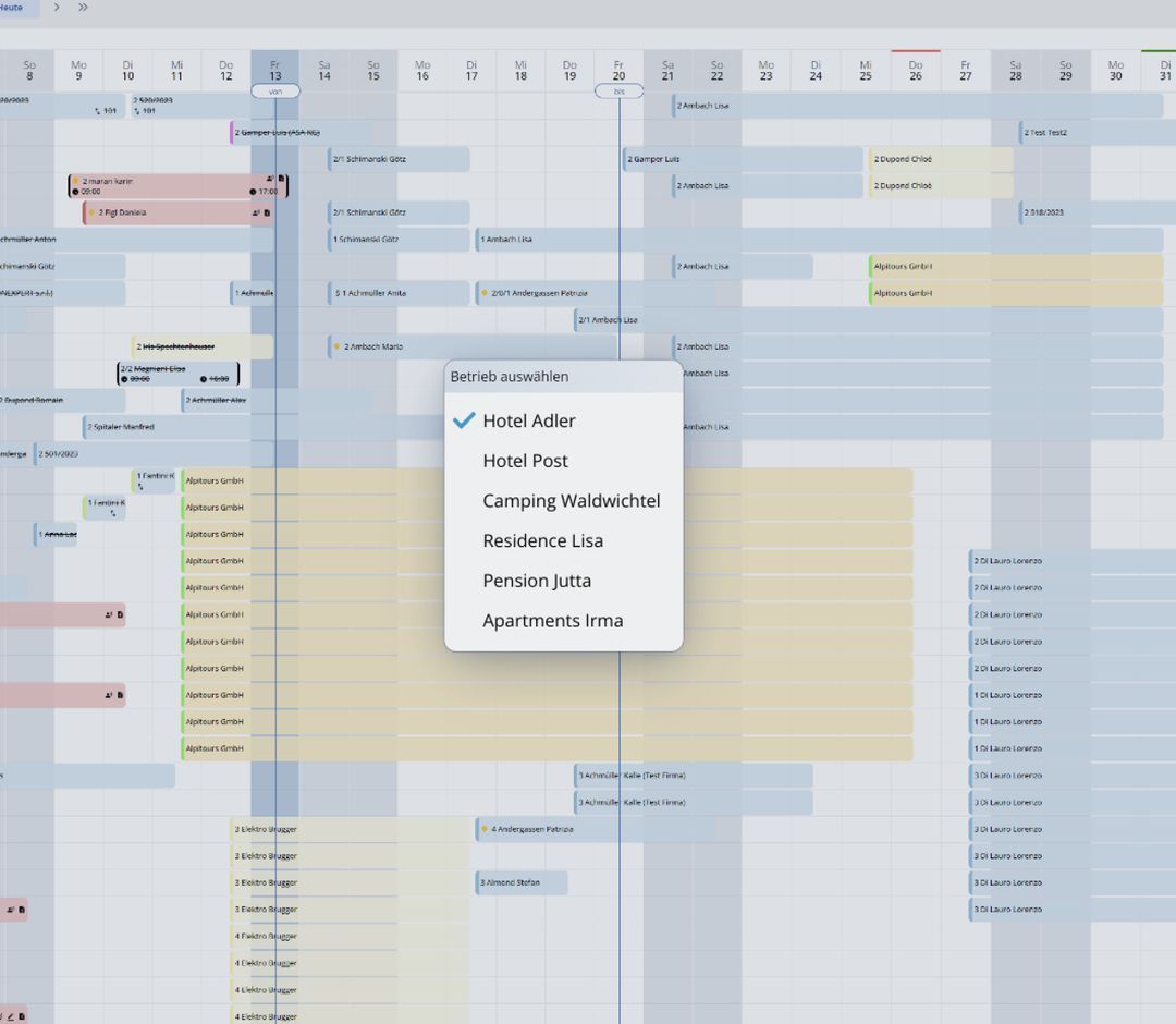 Schnittstellen können sowohl gemeinsam als auch getrennt genutzt werden. Die Verwendung eines gemeinsamen Zimmerplans bietet viele Vorteile:- Verbesserte Kapazitätsauslastung: Durch die gemeinsame Nutzung eines Zimmerplans können Kapazitäten besser ausgelastet werden und Buchungslücken betriebsübergreifend gefüllt werden.